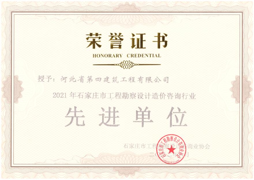 • 石家莊市工程勘察設計造價(jià)咨詢(xún)行業(yè)先進(jìn)單位