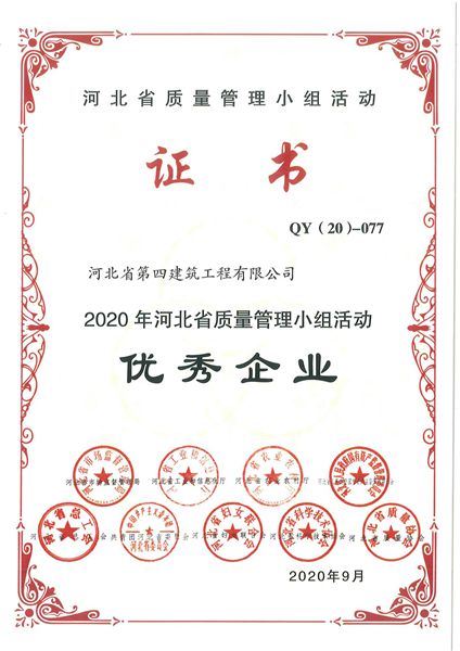 11月10日,公司收到中國建筑業(yè)協(xié)會(huì )《關(guān)于2020年工程建設質(zhì)量管理小組活動(dòng)成果大賽的通知》和河北省質(zhì)量協(xié)會(huì )《關(guān)于印發(fā)2020年河北省質(zhì)量管理小組活動(dòng)質(zhì)量科技成果及優(yōu)秀企業(yè)、卓越領(lǐng)導者、優(yōu)秀推進(jìn)者名單的通知》兩份文件。文件公布了各項榮譽(yù)的獲獎名單,公司獲得2020年河北省質(zhì)量管理小組活動(dòng)優(yōu)秀企業(yè)。公司推薦的11個(gè)成果以及5個(gè)優(yōu)秀個(gè)人分別獲獎,3項成果獲得全國獎項。