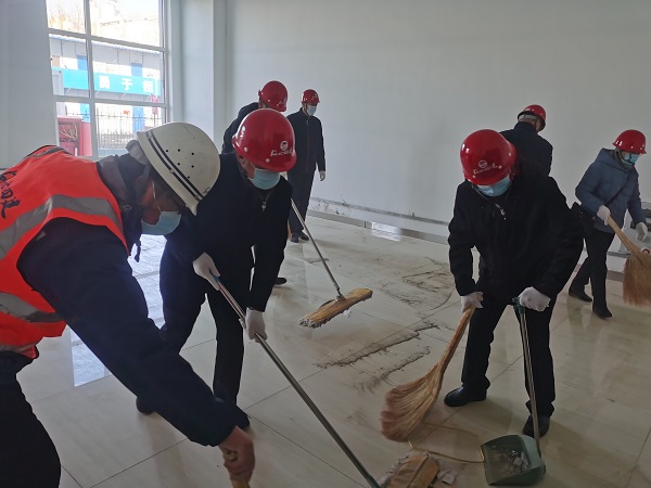 一到現場(chǎng),黨員們就摩拳擦掌、躍躍欲試。項目經(jīng)理首先向孫長(cháng)虹一行簡(jiǎn)單介紹了項目基本情況和現場(chǎng)安全注意事項后,省直工會(huì )的黨員們就戴上安全帽,直奔輔助工房三區。他們手持拖布、笤帚在一層室內清理地板磚、整理雜物、倒運垃圾,干得熱火朝天。大家不顧室內的灰塵,認真地清理著(zhù)地面上的雜物、清掃著(zhù)每個(gè)角落。經(jīng)過(guò)緊張工作,黨員們把三區一層房間和走廊打掃得干干凈凈,把裝飾材料、防水材料等雜物碼放得整齊有序?,F場(chǎng)工人看到黨員們不怕臟,不怕累的勞動(dòng),都紛紛稱(chēng)贊。勞動(dòng)結束,在業(yè)主的帶領(lǐng)下,孫長(cháng)虹、李懷生等黨員參觀(guān)了已經(jīng)完工、正在試運行的制梗生產(chǎn)線(xiàn)。