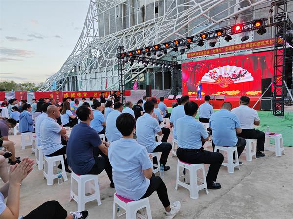 活動(dòng)開(kāi)始前,吳嘉龍一行聽(tīng)取了項目部工作匯報,參觀(guān)了施工現場(chǎng),并對省直工會(huì )普惠政策和“職工e惠”綜合服務(wù)平臺進(jìn)行了詳細介紹。隨著(zhù)下班時(shí)間的到來(lái),項目部職工陸續來(lái)到彩旗飄揚的活動(dòng)現場(chǎng),由不同領(lǐng)域勞模組成的六支服務(wù)隊前漸漸圍滿(mǎn)了人群,有的修剪頭發(fā),有的為手機貼膜,有的接受專(zhuān)家的診療、領(lǐng)取免費的藥物,有的聽(tīng)取法律條文及最新的技術(shù)信息等方面的介紹……下午6點(diǎn)30分,在一曲優(yōu)美的開(kāi)場(chǎng)舞蹈《我的祖國》中,“送文化志愿服務(wù)”拉開(kāi)了序幕。舞臺上,歌曲、反串、變臉、相聲、雜技、舞蹈,一個(gè)個(gè)精彩節目輪番上陣,為職工們送上了一場(chǎng)視聽(tīng)盛宴。在互動(dòng)環(huán)節,現場(chǎng)職工熱情高漲、積極參與,掌聲、喝彩聲此起彼伏,歡聲笑語(yǔ)久久回蕩。昂揚向上的文藝節目,展現了勞動(dòng)者的精氣神,給予了職工極大的鼓舞。