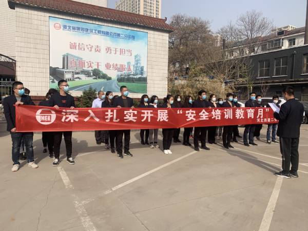 春染大地,生機勃發(fā)。4月份是公司“安全培訓教育月”,二分公司結合施工生產(chǎn)情況提前籌劃、統一部署。分公司及所屬各項目部分別成立了安全培訓領(lǐng)導小組,制定了活動(dòng)實(shí)施方案和培訓計劃,為分公司的安全生產(chǎn)保駕護航。