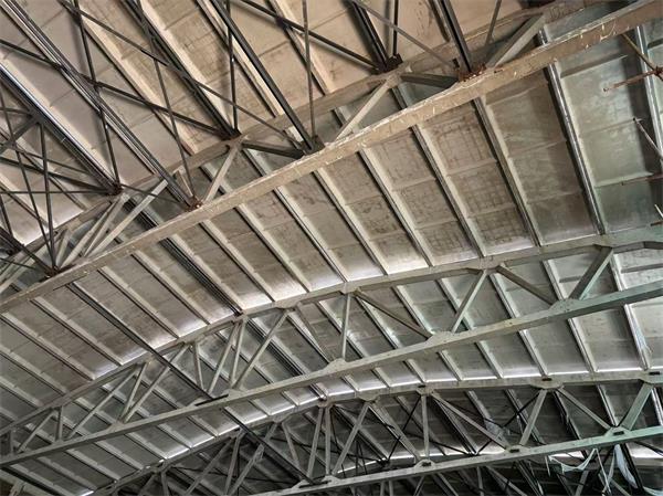 預制過(guò)程中,從前期策劃到生產(chǎn)隊伍的選擇,從材料調配到現場(chǎng)人員配置,每一個(gè)環(huán)節項目部都周密安排?;炷翝仓r(shí),為減少占地面積,將多榀屋架疊在一起澆筑,并增加人員、機械投入,縮短每榀屋架的施工持續時(shí)間,更好的控制混凝土澆筑質(zhì)量。針對預應力折線(xiàn)形屋架尺寸超大且薄、內部預應力大、運輸不便等難題,項目部采用綜合吊裝法,從平房倉山墻處開(kāi)始,第一榀屋架與山墻進(jìn)行連接,隨后沿平房倉長(cháng)度方向依次進(jìn)行屋架吊裝。吊裝時(shí)選用2臺80噸汽車(chē)吊同時(shí)進(jìn)行作業(yè),聘請經(jīng)驗豐富的專(zhuān)業(yè)人員現場(chǎng)指揮,安管人員全程監護,確保施工安全。