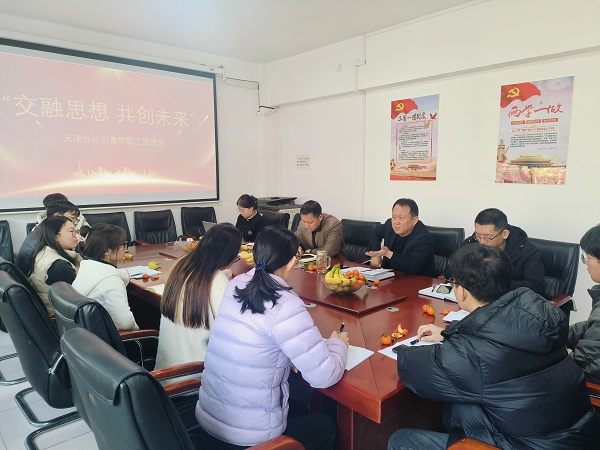 為進(jìn)一步搭建青年職工與分公司領(lǐng)導間交流與分享的平臺,傾聽(tīng)青年職工在工作、生活中的想法與困惑,激發(fā)他們的創(chuàng )新思維和工作熱情,促進(jìn)青年職工與企業(yè)共同發(fā)展,2025年1月23日上午,天津分公司在會(huì )議室召開(kāi)了以“交融思想,共創(chuàng )未來(lái)”為主題的青年職工座談會(huì )。經(jīng)理李廣濤、黨支部書(shū)記臧聯(lián)合、主任經(jīng)濟師張新廣以及9名青年職工齊聚一堂,圍繞職業(yè)發(fā)展、工作感悟等話(huà)題展開(kāi)深入交流。