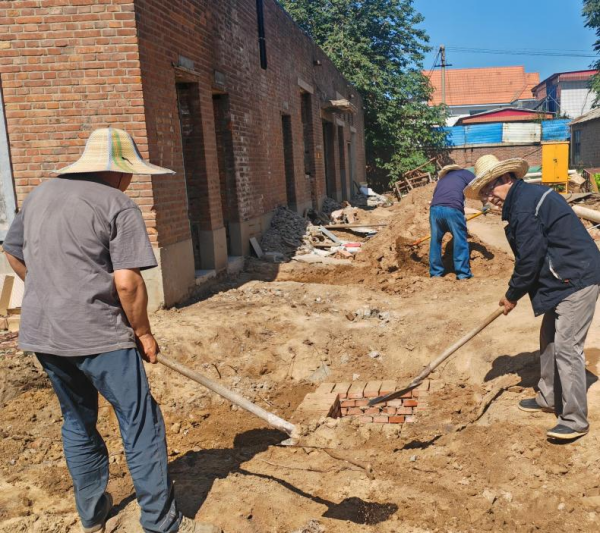 施工現場(chǎng),空間局促。朱占奎憑借豐富的經(jīng)驗,率先攀上高處,仔細勘察結構,精準指揮腳手架搭設,確保作業(yè)平臺穩固安全。白文合則運用其嫻熟的技術(shù),操作著(zhù)沉重的專(zhuān)業(yè)工具,對堅硬的磚砌支柱進(jìn)行精準破拆。李進(jìn)康不僅緊密配合高空作業(yè),傳遞工具、清理碎塊,更主動(dòng)承擔起最繁重的建筑垃圾清運工作,汗水浸透了衣衫,灰塵沾滿(mǎn)了面龐。